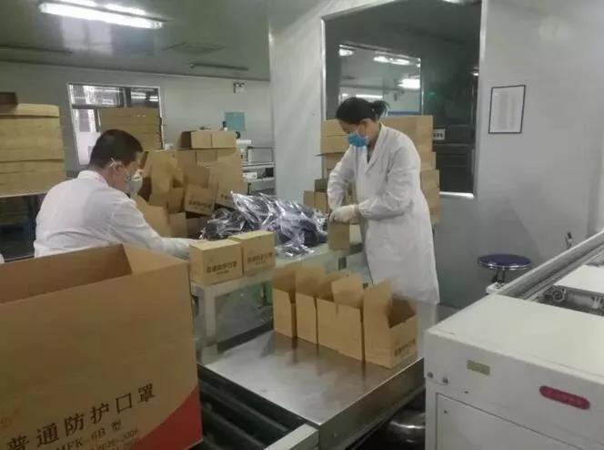 推動口罩包裝流水線作業(yè),防護(hù)口罩日產(chǎn)量達(dá)7萬只